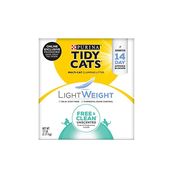 Purina Tidy Cats Low Dust Clumping Cat Litter, LightWeight Free & Clean Unscented, Multi Cat Litter – 17 lb. Box