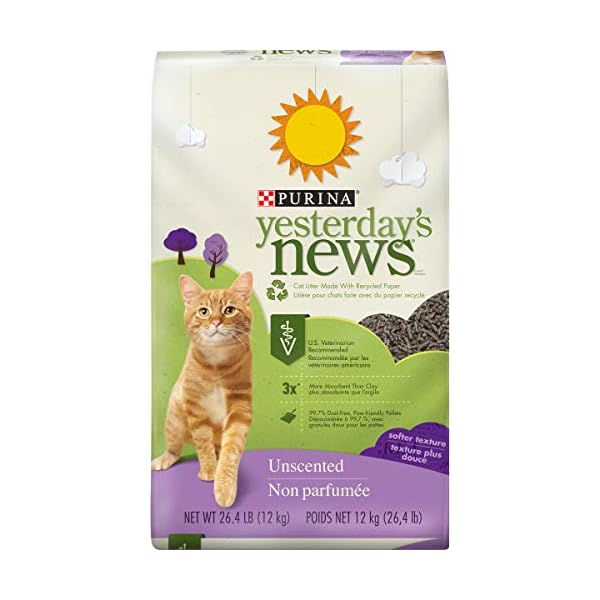 Purina Yesterday’s News Non Clumping Paper Cat Litter, Softer Texture Unscented Cat Litter – 26.4 lb. Bag
