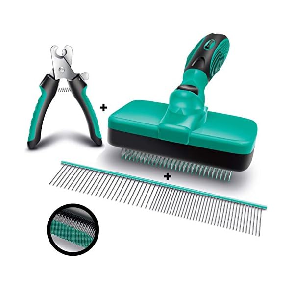 Ruff ‘N Ruffus Self-Cleaning Slicker Brush With NO- PAIN Bristles Gently Removes Loose Undercoat & Tangled Hair For Cats…