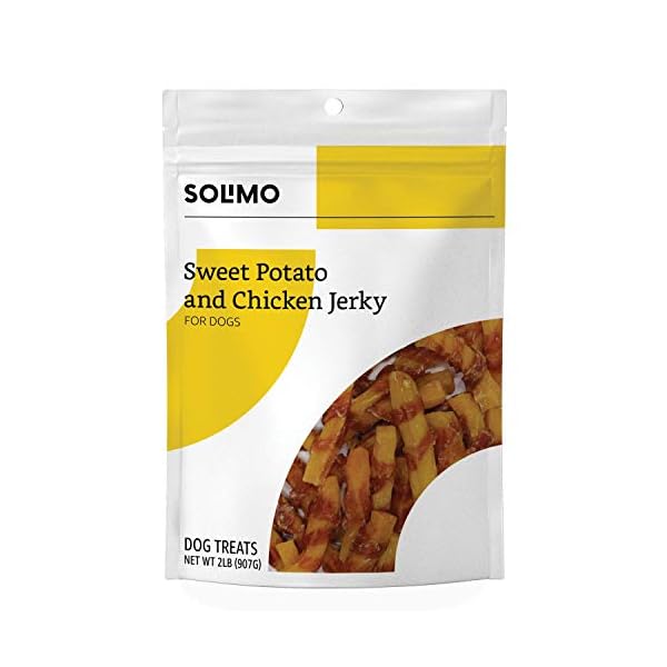 Amazon Brand – Solimo Jerky Dog Treats, 2 Lb Bag (Chicken, Duck, Sweet Potato Wraps)