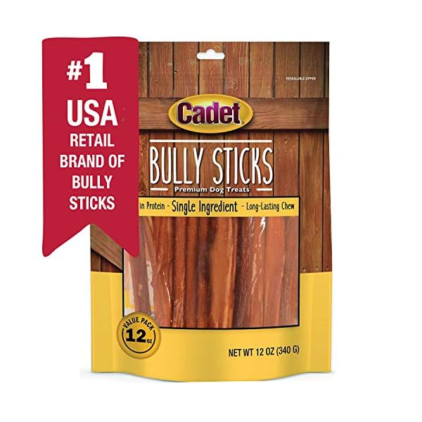 Cadet Bully Sticks Dog Treats, 4″-7″ Stick (12 oz. Bag) Bully Sticks Recommended for Small and Medium Dogs