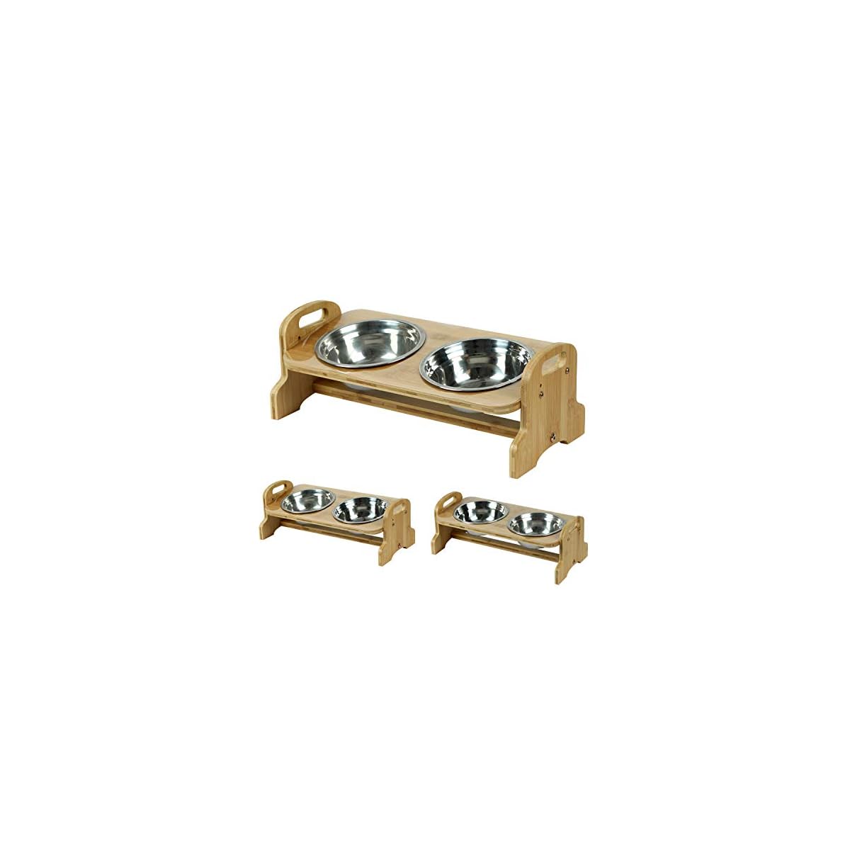 Akinerri Raised Pet Bowls for Cats and Dogs, Bamboo Adjustable Tilted Elevated Dog Cat Food and Water Bowls Stand Feeder…