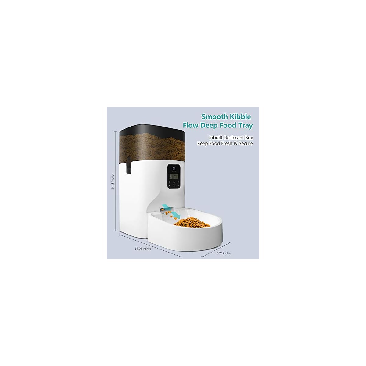 LARGE CAPACITY HOPPER – This 7L automatic pet feeder consistently provides food for your cat and dog smoothly for a couple of day, assuring you that it’ll stay full and happy when you’re out for a short vacation or work long hours as well as come with a desiccant bag to keep food fresh.