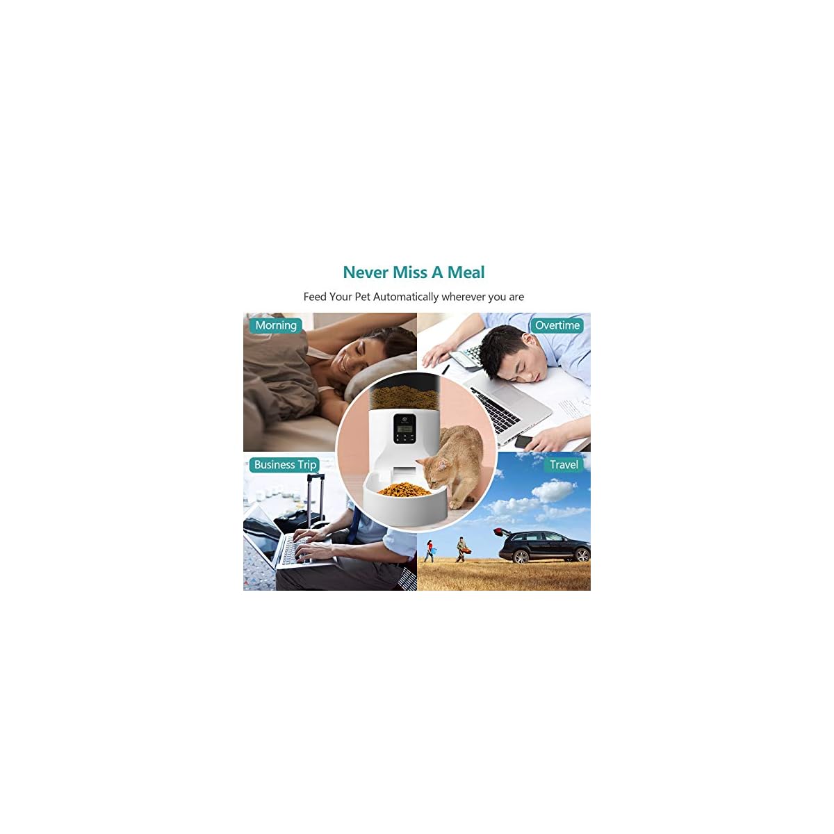 FLEXIBLE MEAL SCHEDULING:: No more pre-dawn wake up calls, or worry when you are overtime at night! Easy to program this automatic feeder to dispense food in right time, 1-4 meals per day and up to 20 portions per meal customized healthy diet for your cat and dog.