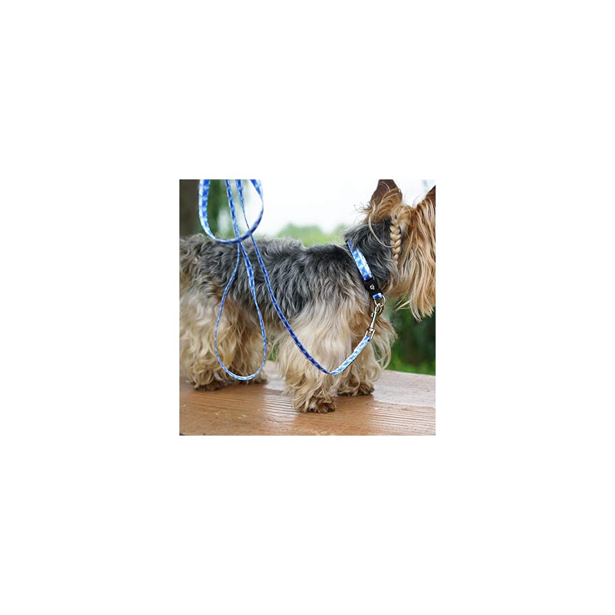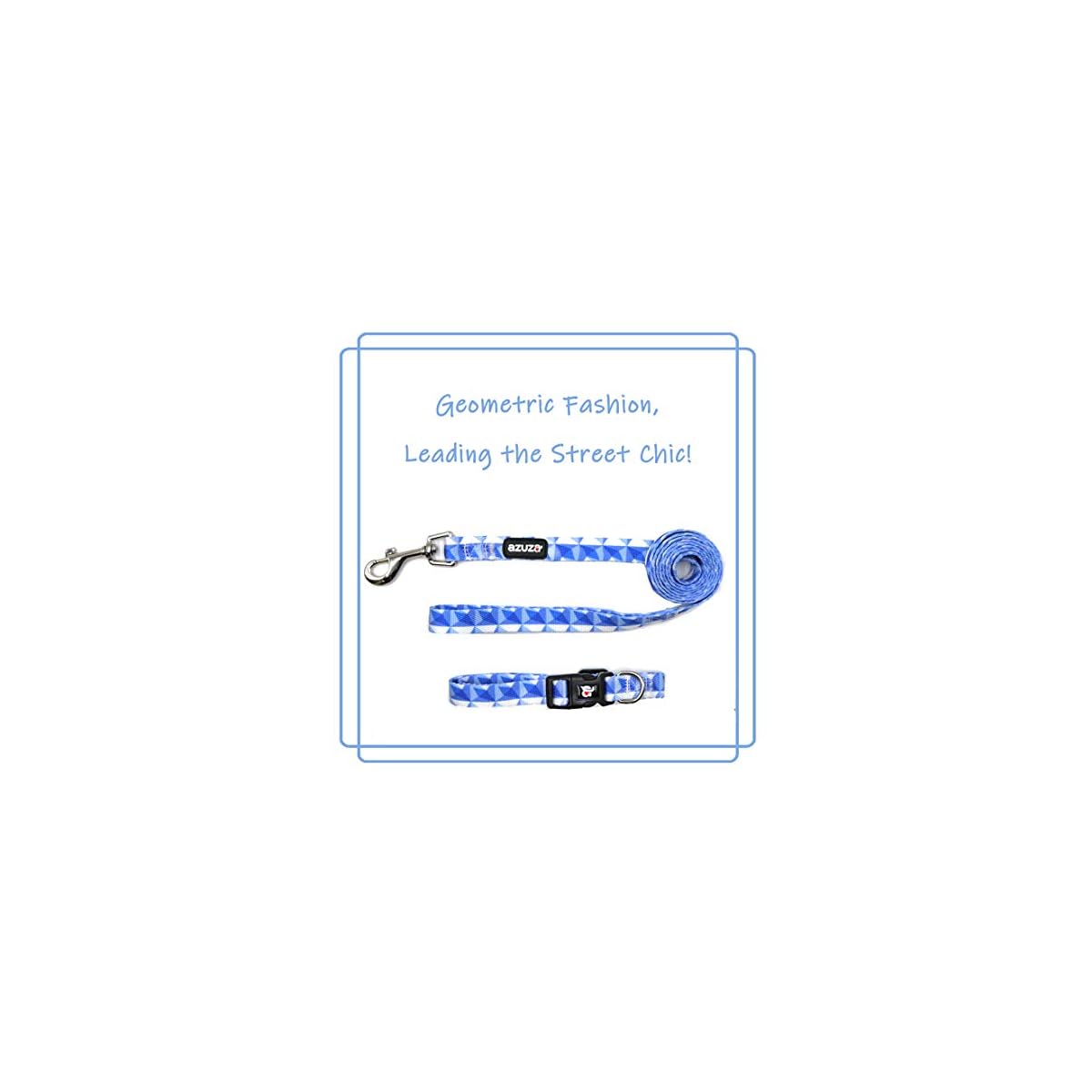 azuza Dog Collar and Leash Set, Adjustable Nylon Collar with Matching Leash, Blue Prism Dog Collar for Small Dogs