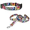 Lucky Love Dog Collars | Vivid Floral Girl or Boy Dog Collar & Leash Set for Large Dogs – Blackbird Combo, Large