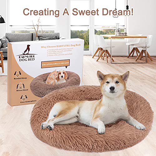 OQQ Dog Beds Calming Dog Bed, Faux Fur Fluffy Donut Cuddler Anxiety Cat Bed, Round Donut Dog Beds Large Dogs (XX-Large…