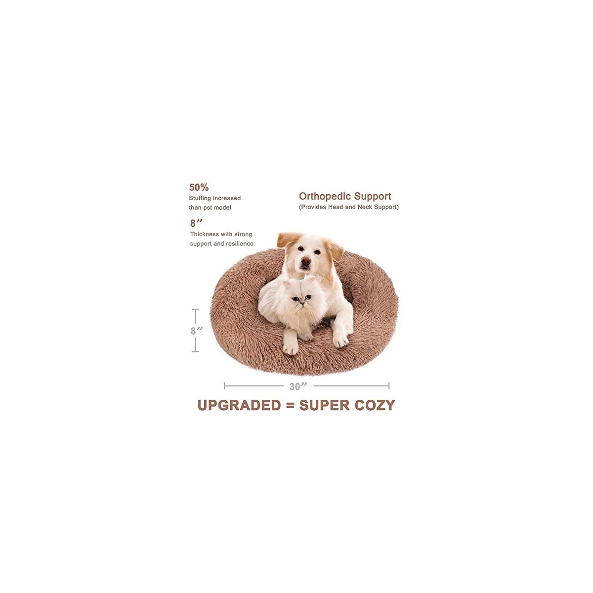 100% safe material: Calming & Self-warming donut pet bed is made of durable nylon and luxurious faux fur. Aslo stuffed with eco-friendly PP cotton, a combination of comfortable and breathable, which offering joint and muscle pain relief.