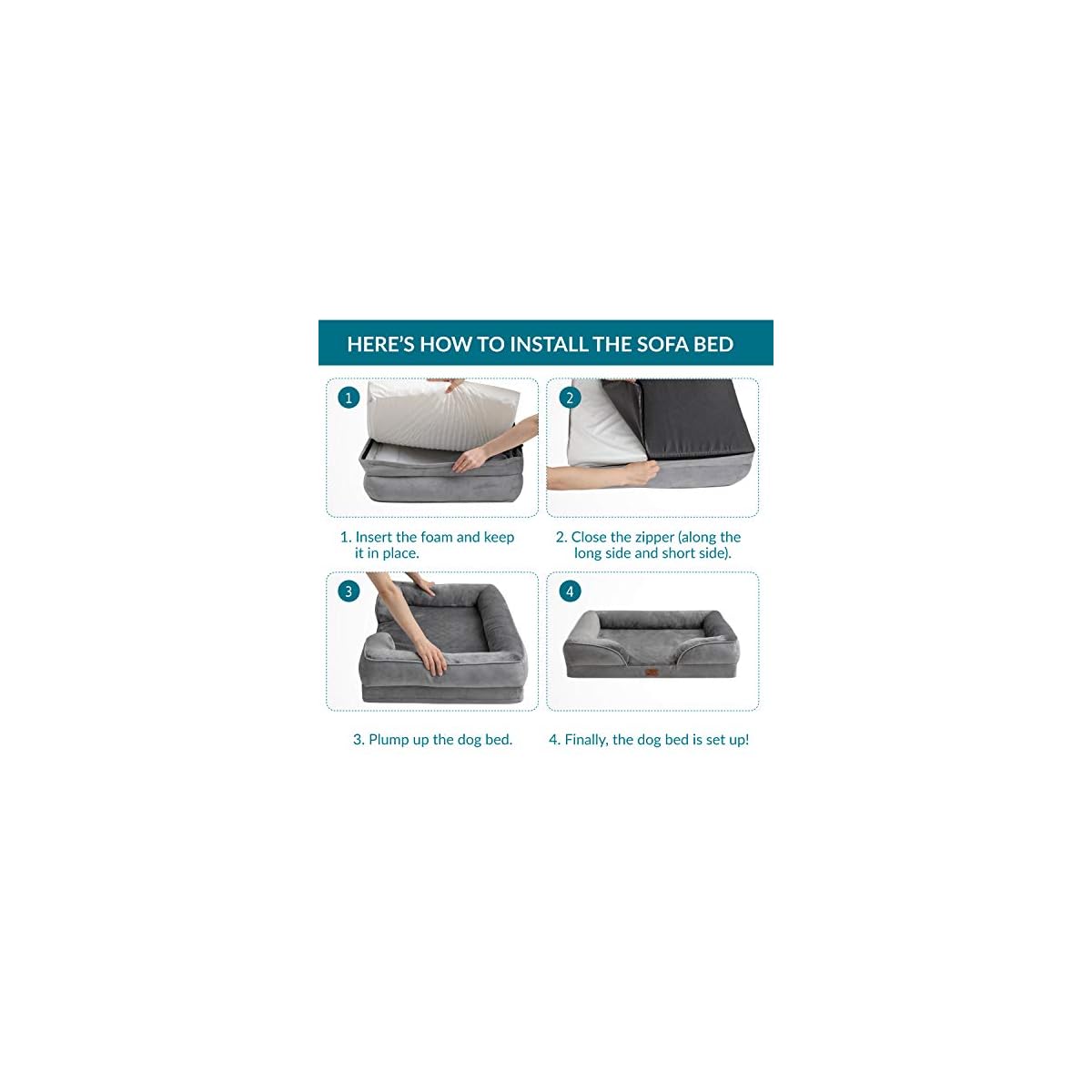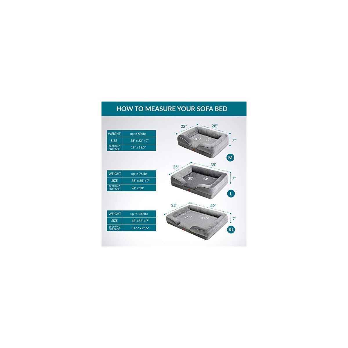 PERFECT SIZE:The sleeping surface (24”x20”) is roomy for your pal(Up to 65 LBS) to sprawl out comfortably and snuggle in – 2.5″ thick memory foam base and arm stuffing (microfiber) are moderately firm to feel like a real sofa.