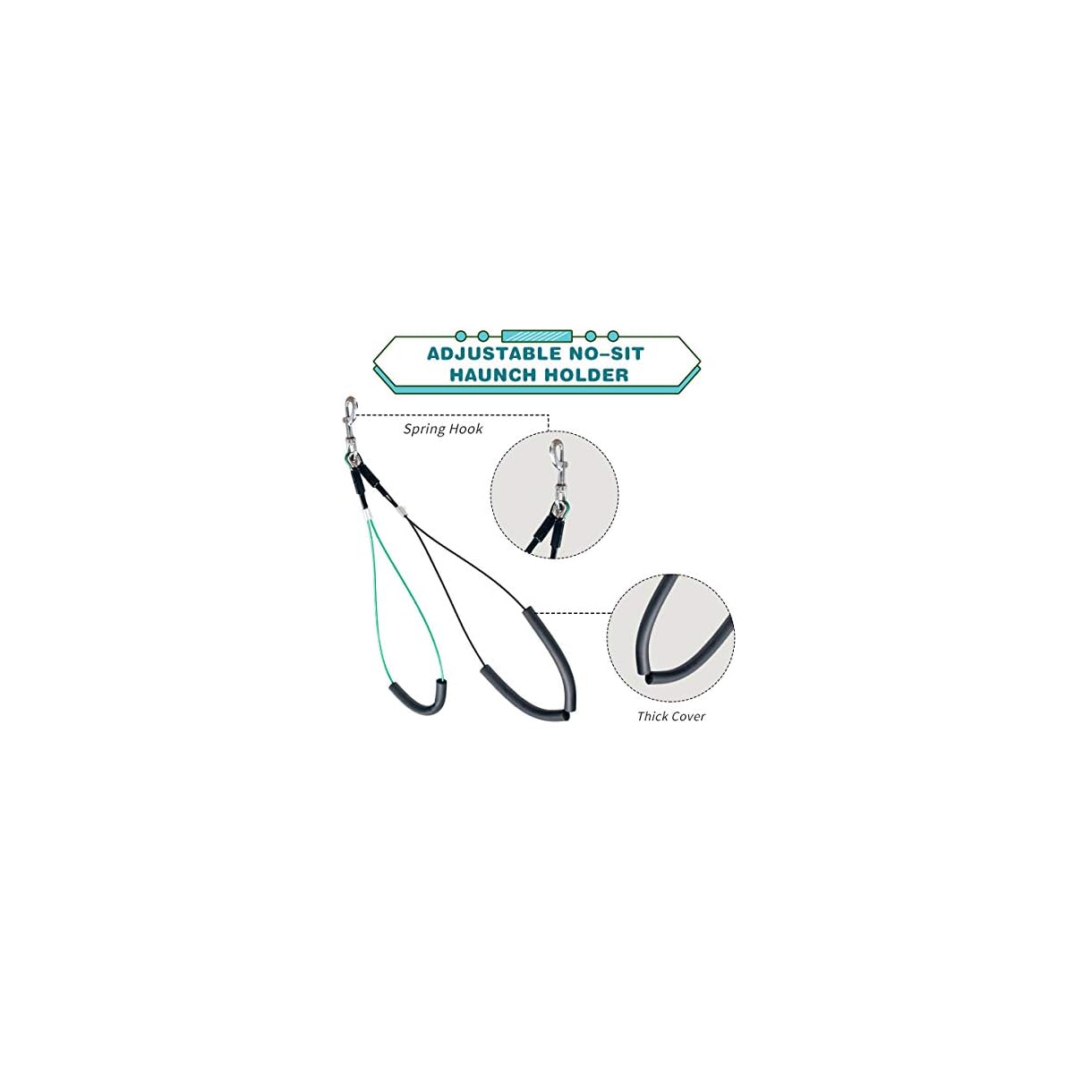 NO SIT HAUNCH HOLDER GROOMING RESTRAINT & LOOP NOOSE: No Sit Haunch Holder and dog restraint rope can safely and securely hold head and haunches on grooming tables or in tub during grooming, bathing, hair blowing and dog care and is an ideal solution for keeping dogs standing in comfort and helps control overly excitable pets from excessive moving.