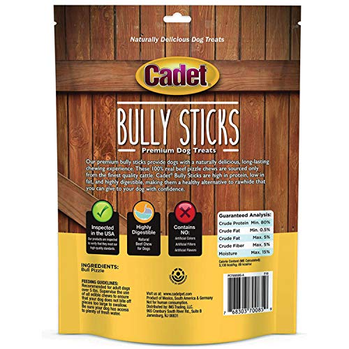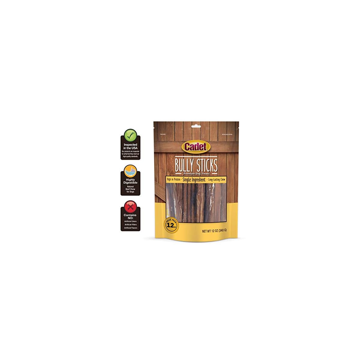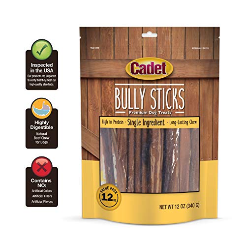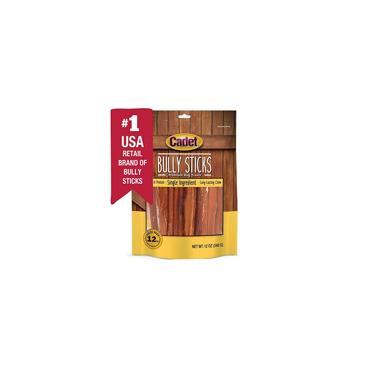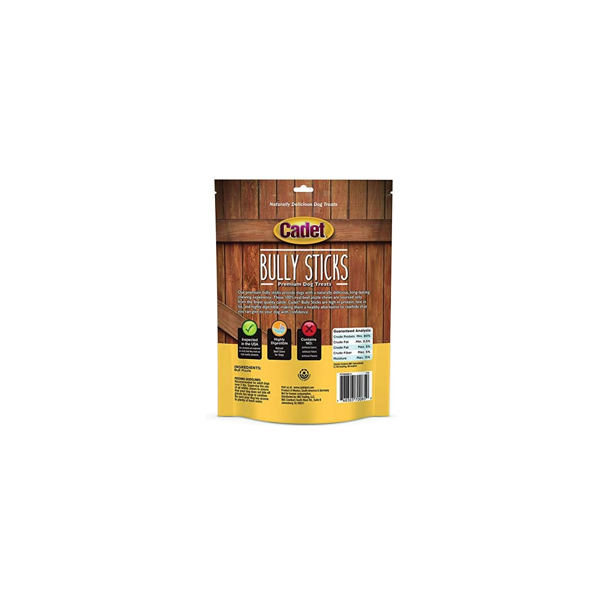 Trusted for more than 30 years, Cadet offers naturally delicious dog treats and chews crafted from responsibly sourced, premium ingredients. Made of 100% real beef pizzle, Cadet Bully Sticks satisfy dogs’ innate urge to chew. Each delicious bully stick is slow-roasted to bring out the natural flavor your four-legged friend craves and provides long-lasting enjoyment. Made with just one single ingredient, these all-natural dog chews do not contain any artificial colors, flavors, or fillers. They are also naturally high in protein and low in fat, making them a wholesome reward that your dog will love and you won’t feel guilty about giving. Plus, these chews help clean teeth through mechanical chewing action. Treat your best friend to a satisfying chewing adventure with Cadet Bully Sticks for dogs.