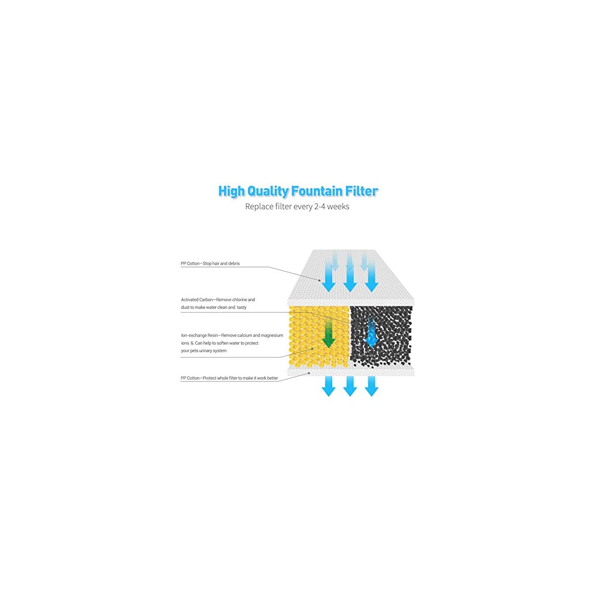 [ LONG LIFETIME & AFFORDABLE ] Our cat water fountain replacement filter is recommend to be replaced every 1 or 2 weeks varying from actual use condition. 12 pack can offer clean water for a period of 3 to 6 months. Before put in use, filter should be rinsed under running water to flush out additional carbon powder.