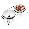 Smith Chu Premium Elevated Pet Bowls, Raised Dog Cat Feeder Solid Bamboo Stand with Ceramic Food Feeding Bowl – Cute…