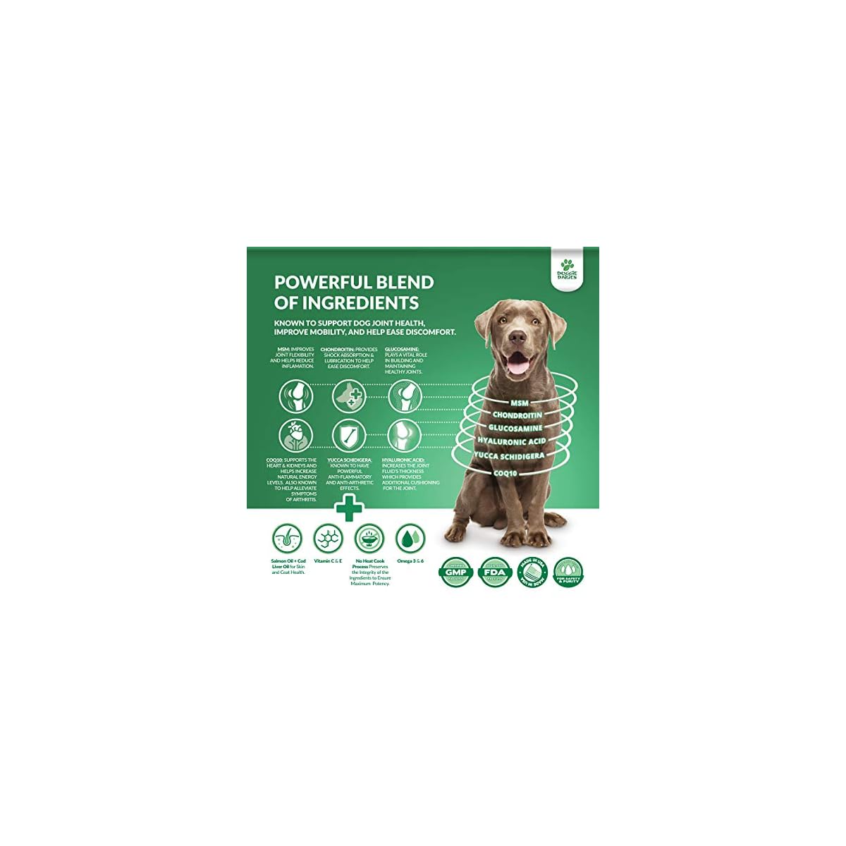 Powerful Blend of Ingredients Known to Support Dog Joint Health, Mobility, and May Help Discomfort Associated With Normal Daily Activity: Supporting your dog’s joint health is important, our soft dog treats make that easy; Every soft chew is loaded with Glucosamine HCl, Chondroitin, MSM, Yucca Schidigera, CoQ10 (coenzyme q10), and Hyaluronic Acid (HA); Plus Omega 3 & 6, Vitamin C & E, and Salmon Oil & Cod Liver Oil for skin and coat health