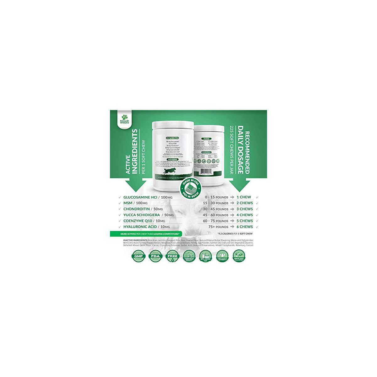 More Than Just Glucosamine and Chondroitin for Dogs: Every delicious peanut butter flavored soft chew contains the perfect balance of six powerful active ingredients that work together to cushion and protect your dog’s joints; Our advanced glucosamine for dogs is made by using cold-press extrusion which helps preserve the integrity of the ingredients to ensure maximum potency for your pup