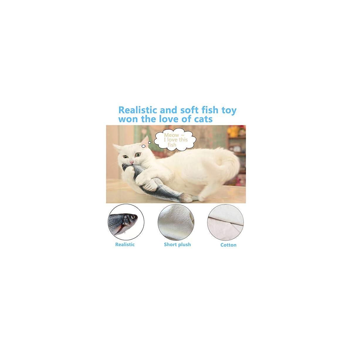 🐟【High-quality Materials】 These moving cat toys are made of safe and durable cotton cloth and short plush. Durable material allows cat to pat it, pounce and grab it and do the “deathnny” kick even like she would with actual prey.
