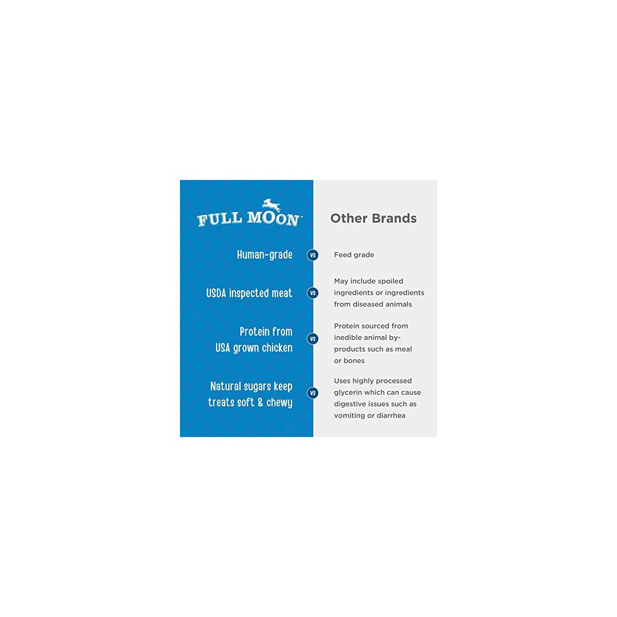 Full Moon Chicken Fillet treats are made from 100% all-natural, human grade chicken and contain no artificial flavors or preservatives. Each flavorful treat has a chewy texture your dog is sure to love!.