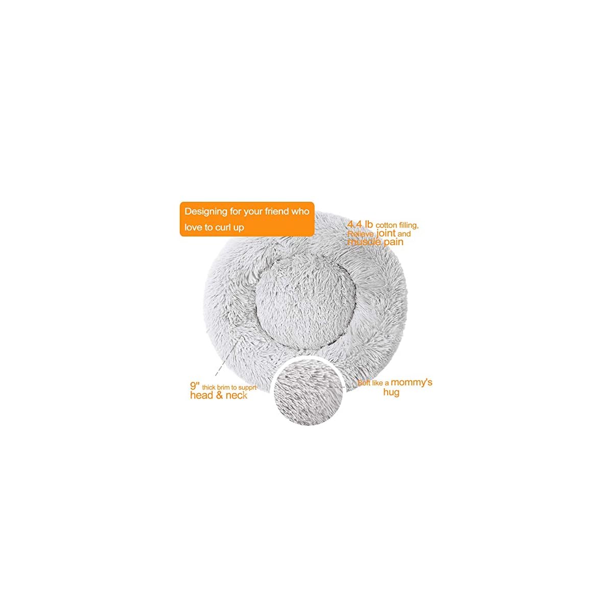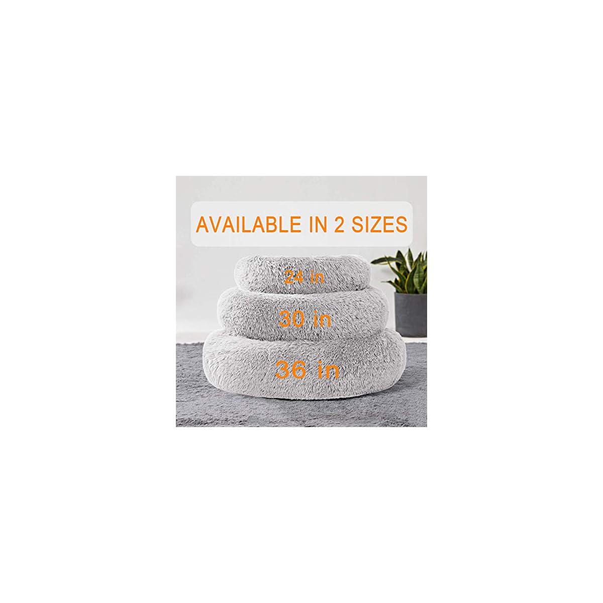 VALID HEAD & NECK SUPPORT: This pet round bed is soft trim on the inside, donut shape with warm fur, surrounding bolster to support our friends’ head and neck. The 24in medium dog bed is filled with 2.2lb filler, the 30in large dog bed is filled with 4.4lb filler, absolutely a good supporter for our friends’ head, neck and body