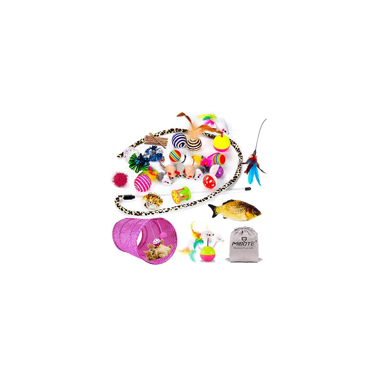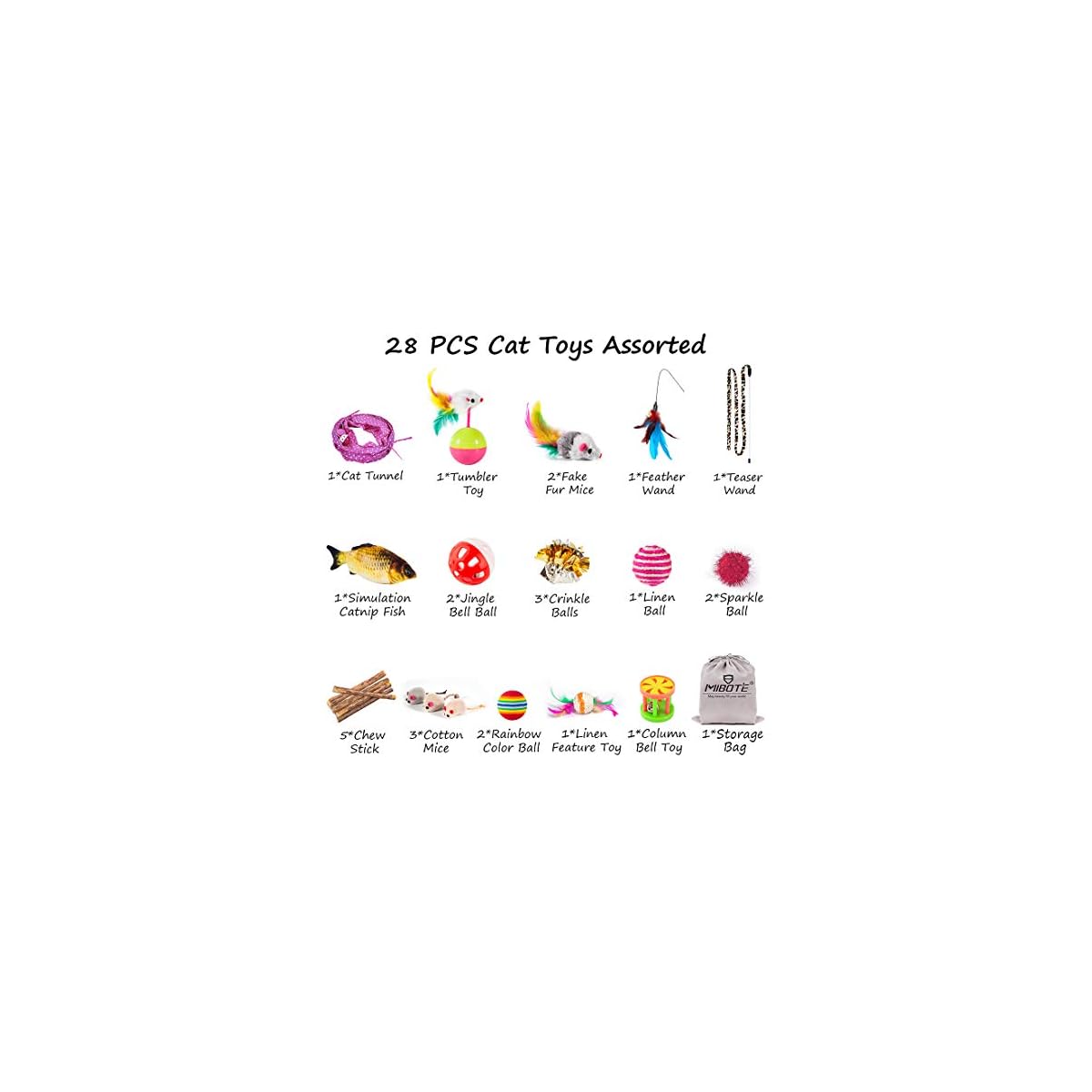 MIBOTE 28Pcs Cat Toys Kitten Toys Assorted, Cat Tunnel Catnip Fish Feather Teaser Wand Fish Fluffy Mouse Mice Balls and…