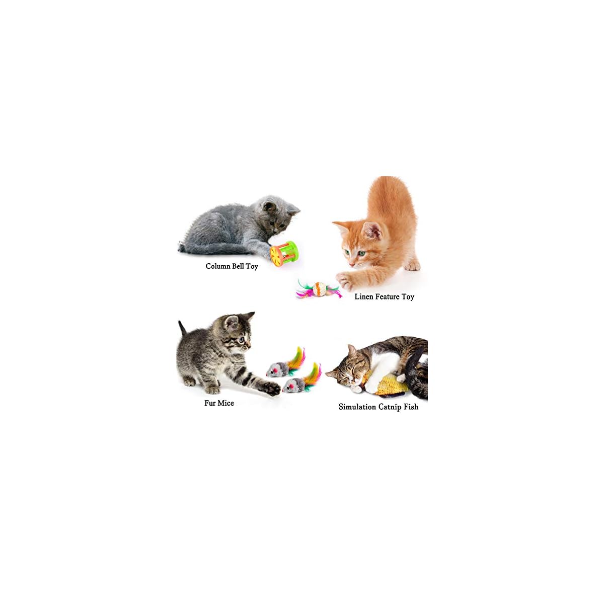 Best Value Cat Toys- 30 Pcs kitten toys including collapsible tunnel, catnip fish, cat teaser wand, interactive feather toy, fish, fluffy mouse and mice, variety colorful crinkle balls and bells and storage bag.