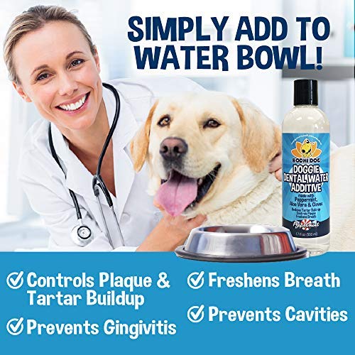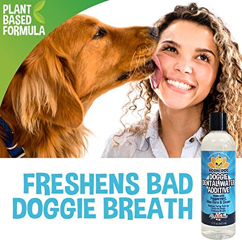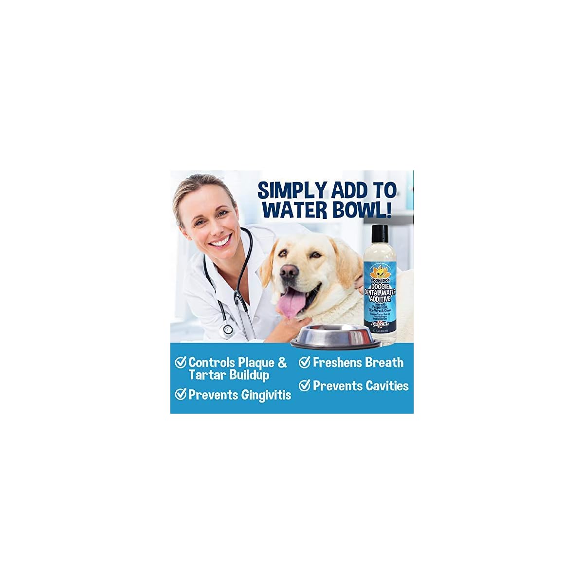 FRESHENS BAD DOG BREATH: Fight bad breath the easy way by simply adding our canine dental care liquid additive to your dog’s drinking water. Our brushless oral care water additive reaches deep down to treat breath odor at the source without the hassle of a toothbrush or toothpaste. Our natural formula with cloves and honey is gentle yet effective at addressing odors in your pet’s mouth. Say goodbye to offensive, stinky, smelly, foul, terrible, bad, dog breath!