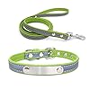 Custom Personalized Reflective Cat Dog Collar and Leash Combo Set with Engraved Name Plate Green Puppy Kitty Dog Cat…