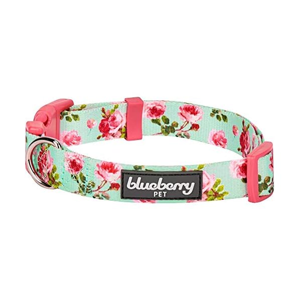 Blueberry Pet 7 Patterns Spring Scent Inspired Floral Rose Print Turquoise Adjustable Dog Collar, Medium, Neck 14.5″-20″