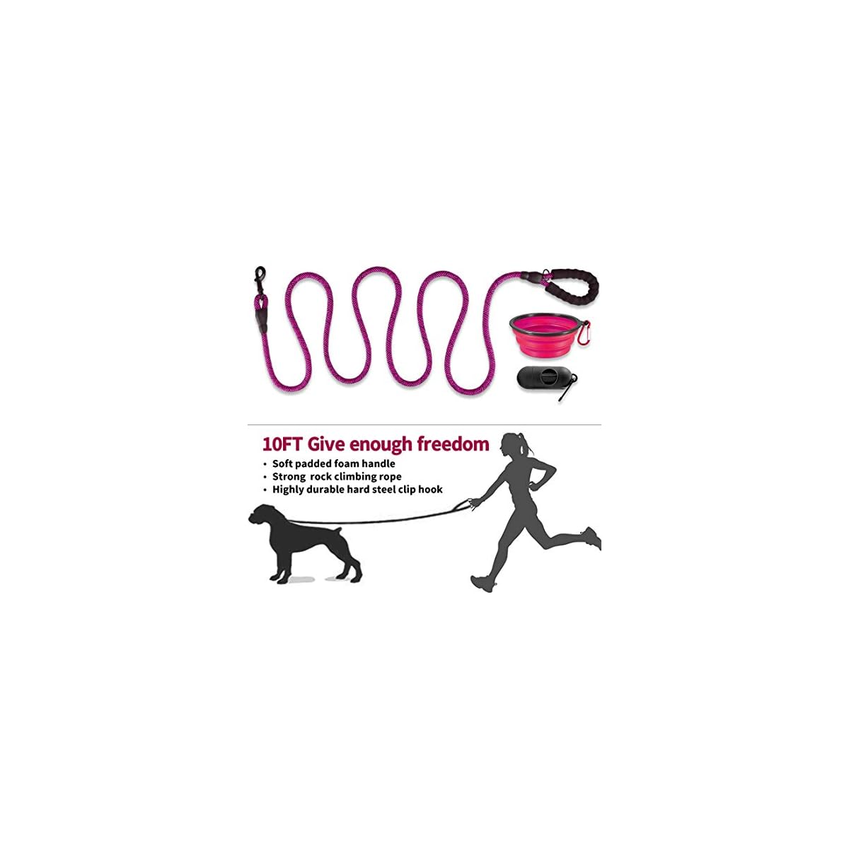10 FT Heavy Duty Dog Leash with Comfortable Padded Handle Dog leashes for Medium Large Dogs with Collapsible Pet Bowl