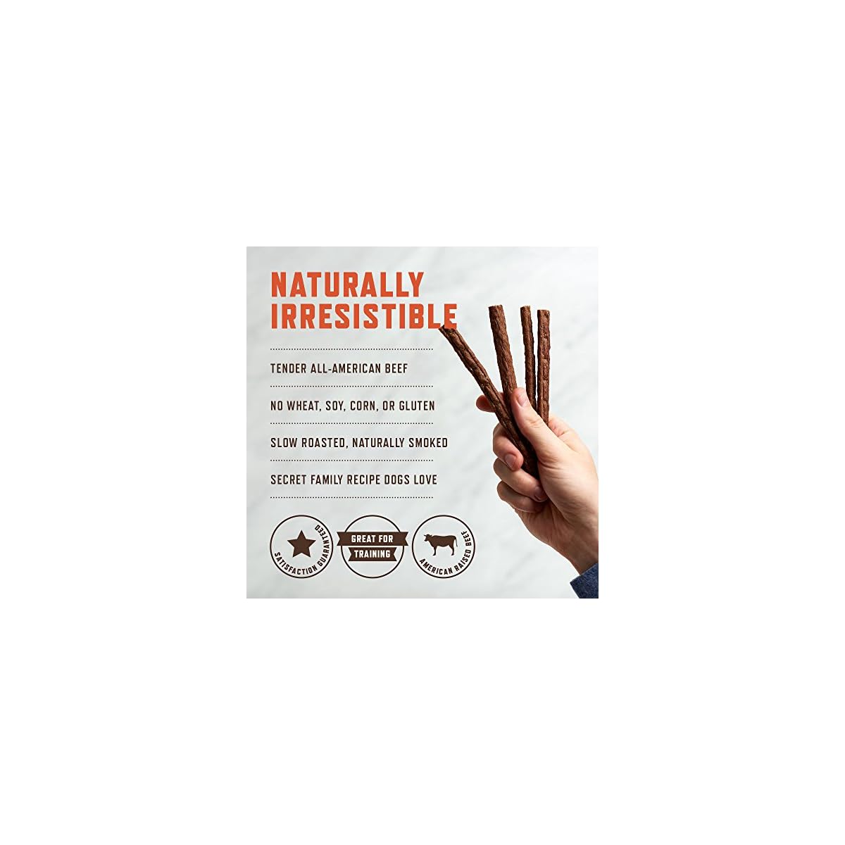 SECRET FAMILY RECIPE DOGS LOVE – What’s the secret to these tasty treats? We start with all-American beef of the highest quality. The second ingredient is time. It takes a full 10 hours of smoking to develop that soft chewy texture dogs love.