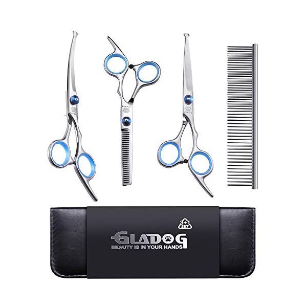 GLADOG Professional Grooming Scissors for Dogs with Safety Round Tips, 5 in 1 Dog Grooming Scissors Set, Sharp and…