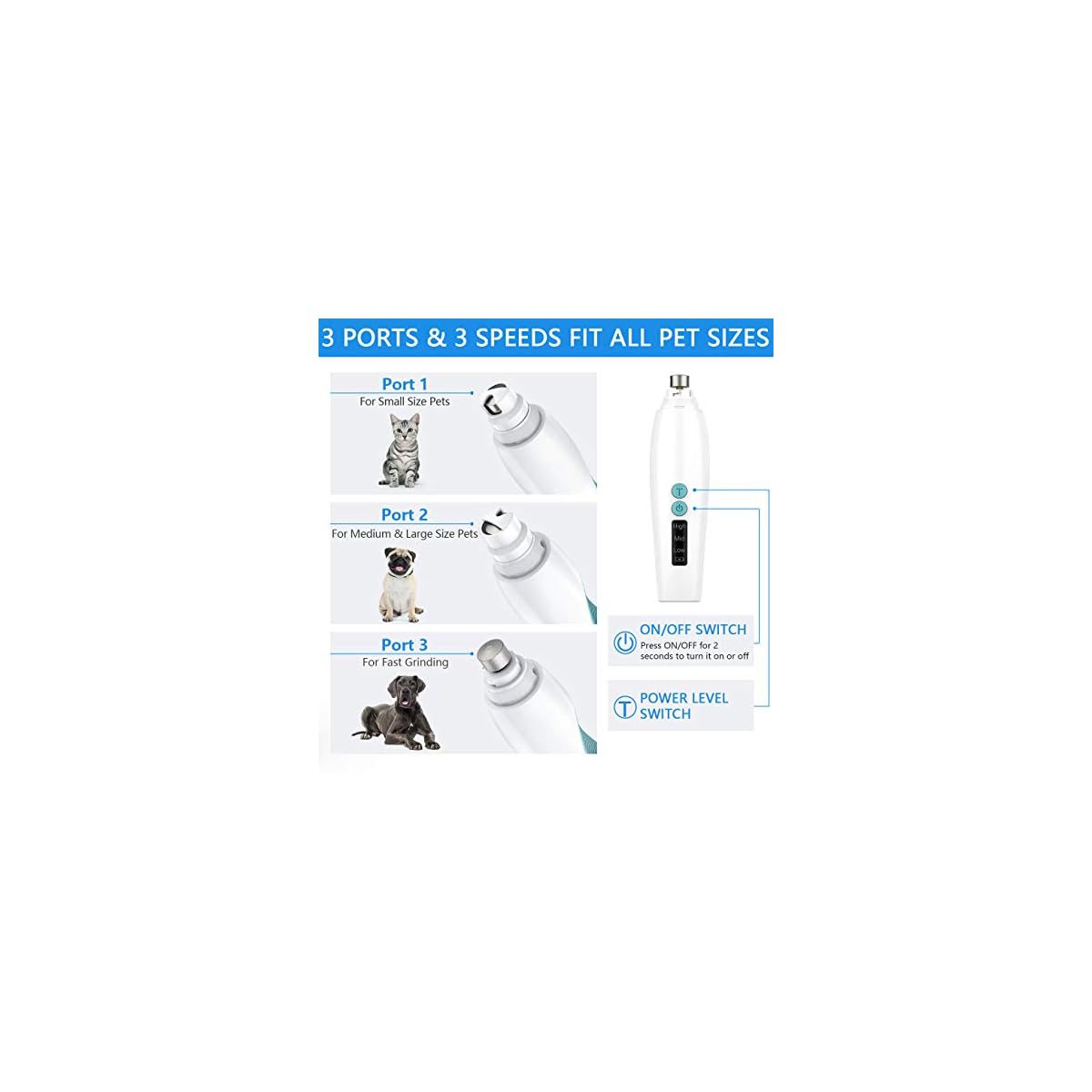 SUITABLE FOR ALL KINDS OF PETS: This professional pet nail grinder has 3 grinding ports and a 3-speed adjustment switch, which is suitable for small, medium and large pets with different sizes of nails. You can choose the appropriate port and speed according to your pet’s size and nail hardness. Please note to take off the grinder cover before use if you want to grind your pet’s nail quickly.