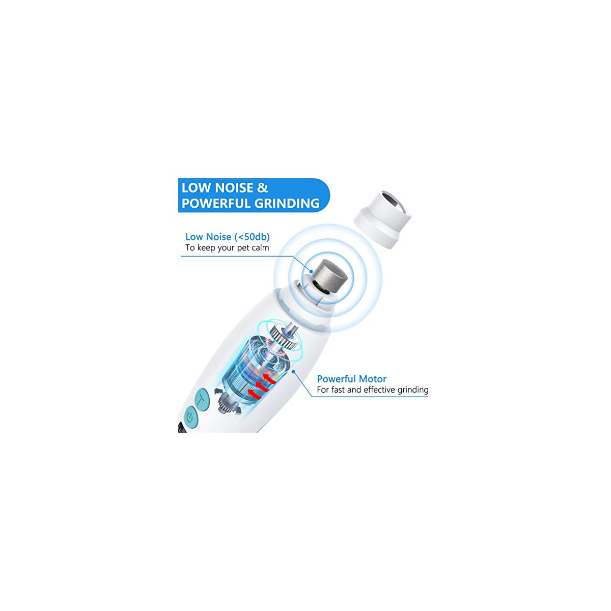 LOW NOISE AND POWERFUL MOTOR: Our dog nail trimmer is equipped with an advanced motor that has a very low vibration and noise, which can keep the pet calm and make the grinding easier. Meanwhile, this upgraded motor with the latest technology has a super-powerful speed to ensure fast and effective grinding, which helps to complete the grinding task in a very short time.