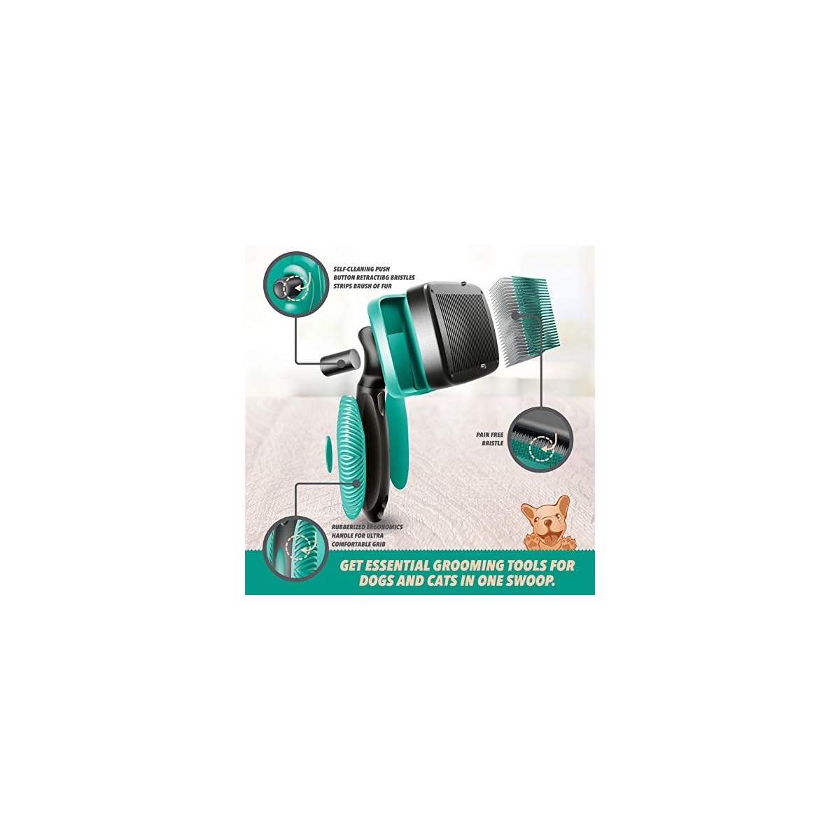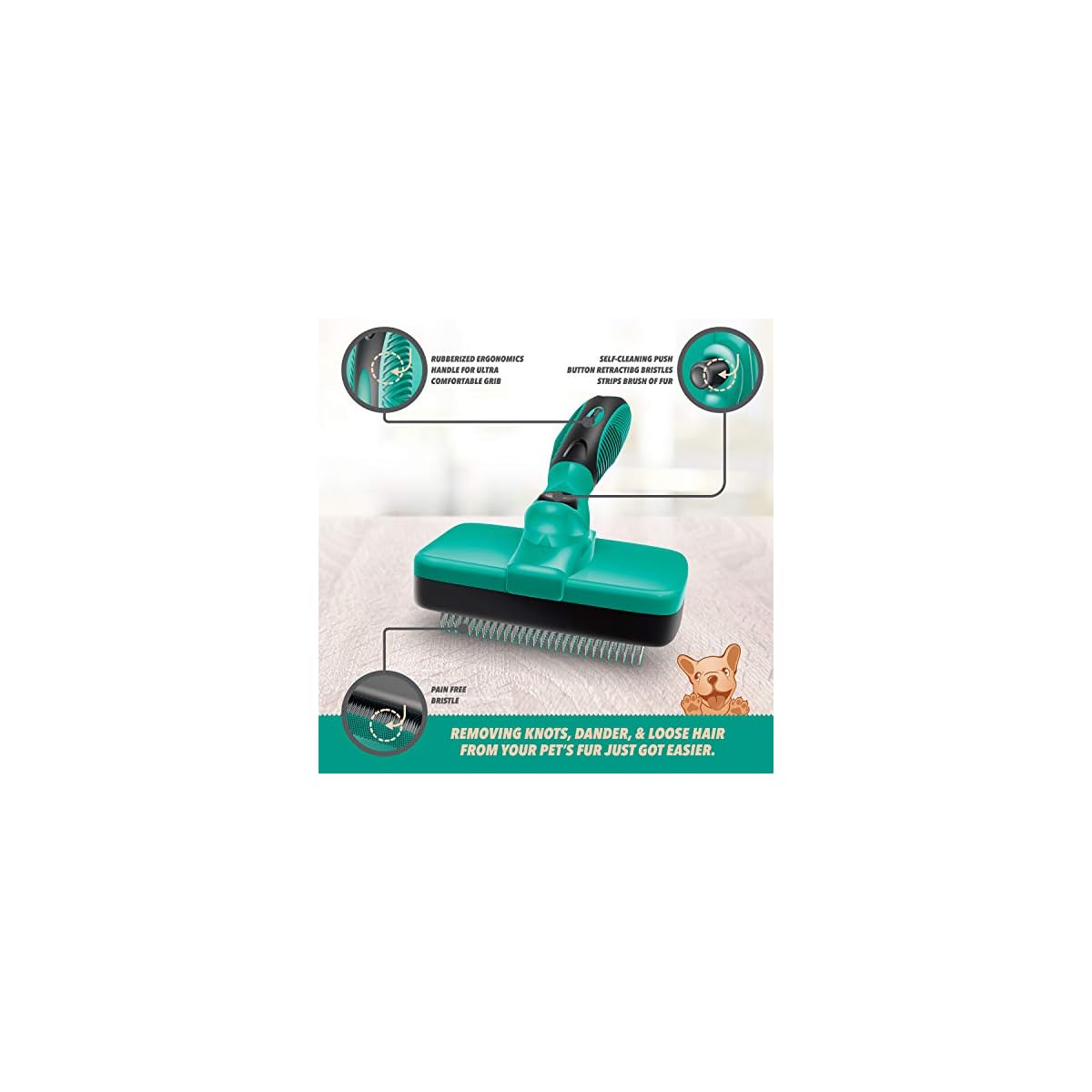 🐾 SELF-CLEANING SLICKER BRUSH 🐾 Removing knots, dander, and loose hair from your pet’s fur just got easier. Press the button on the slicker brush after you’re done and watch the bristles retract and the hair fall right off. Ideal for all sizes of dogs and cats and all hair types.