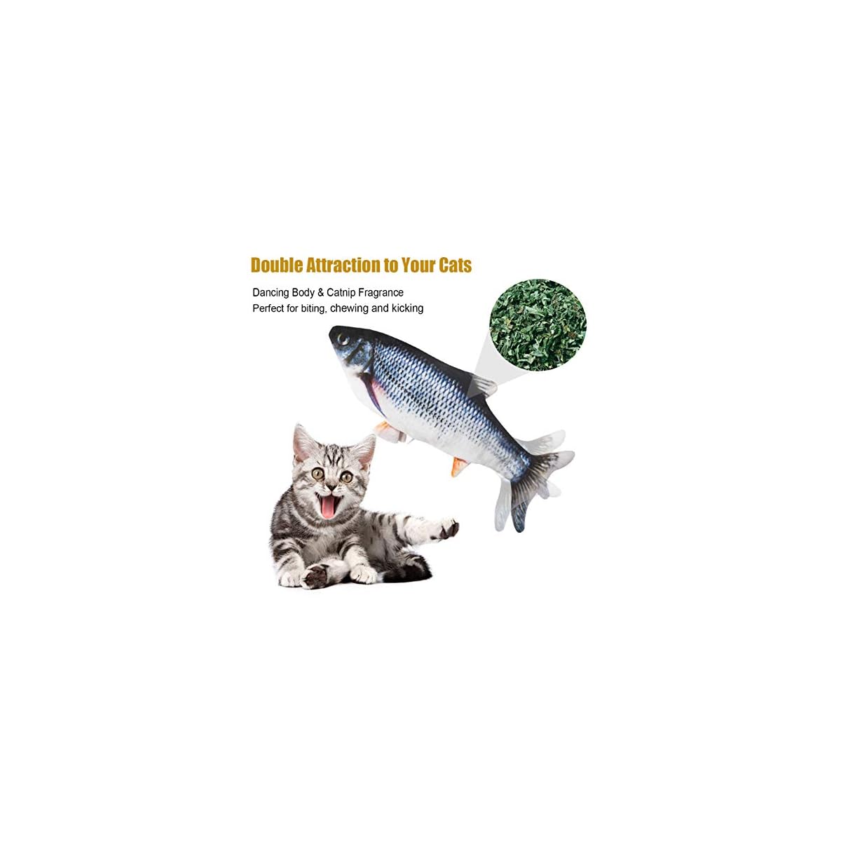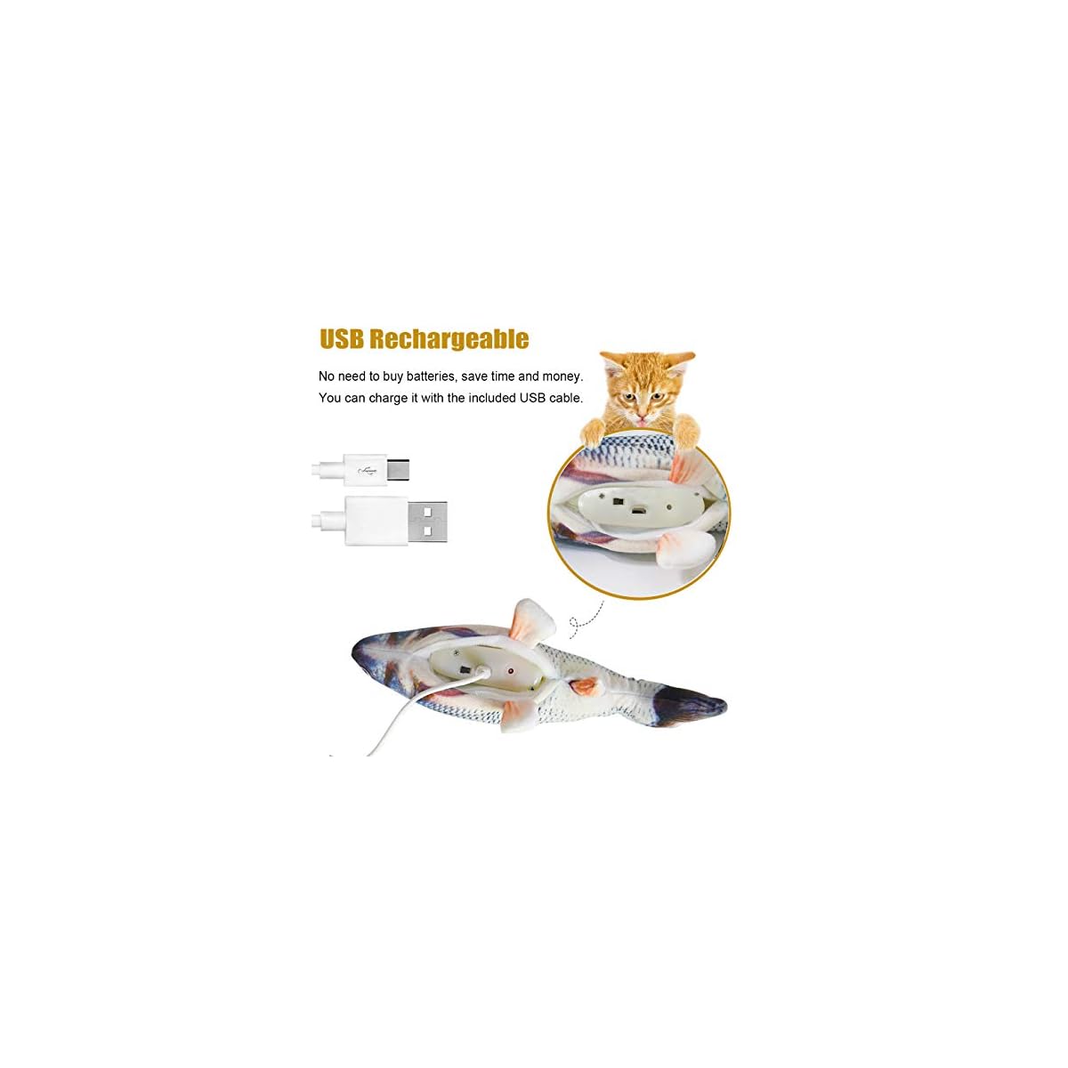 Electric Moving Fish Cat Toy: Built-in touch sensor, when your cat touches the toy, the fish cat toy will automatically move and swing and make a sound, attracting your cat to play and kick. You can charge it with the included USB cable.