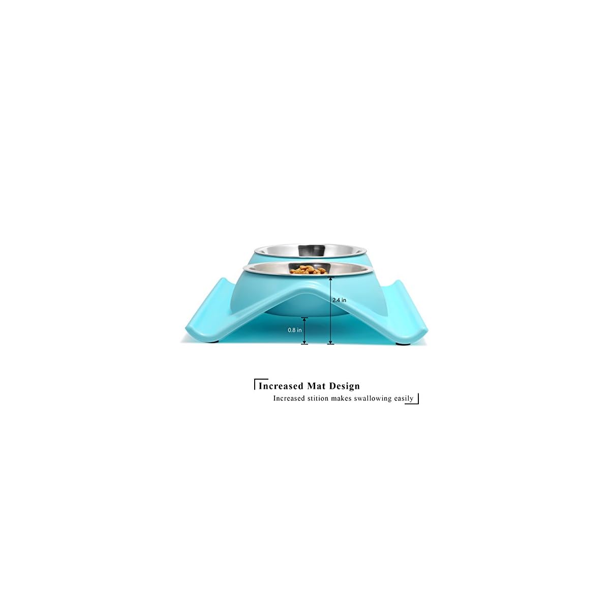 Reduce neck burden – Increase 0.8 inch high station design makes pet more comfortable access to get food and water, which promotes the flow of food from the mouth to the stomach and makes swallowing easily.
