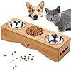 Smith Chu Premium Elevated Pet Bowls, Raised Dog Cat Feeder Solid Bamboo Stand with Ceramic Food Feeding Bowl – Cute…