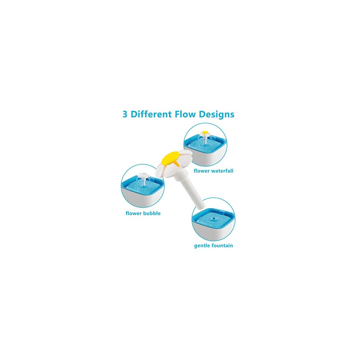 3 different flow designs – Veken Pet Fountain has 3 modes: flower waterfall, flower bubble, and gentle fountain. Each mode is specifically designed to meet the needs of various pets. The free-falling stream and bright color will attract curious pets to check it out.